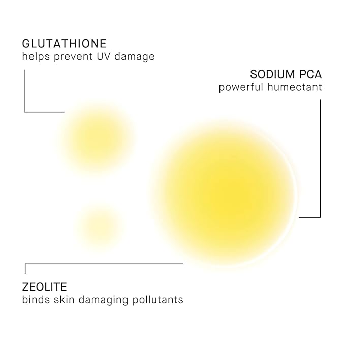 - L-Ascorbic Acid, Sodium PCA, Vitamin E help to hydrate, bind moisture, protect skin from free radicals.