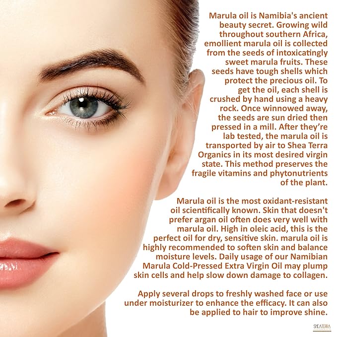 Shea Terra Namibian Marula Cold-Pressed Extra Virgin Oil | Nutrient-Rich, All Natural & Organic Oil with Essential Fatty Acid and Powerful Antioxidants for Dry and Mature Skin – 2 oz