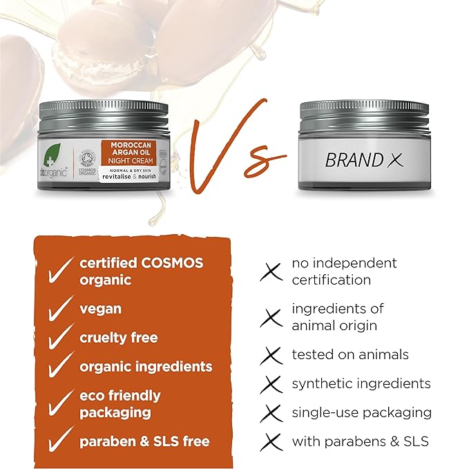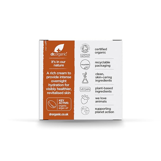 Dr. Organic Moroccan Argan Oil Night Cream | Nourishing Overnight Therapy Cream, For Normal to Dry Skin, Vegan, Natural, Certified Organic, Paraben & SLS-Free, 50 mL/ 1.7 fl oz