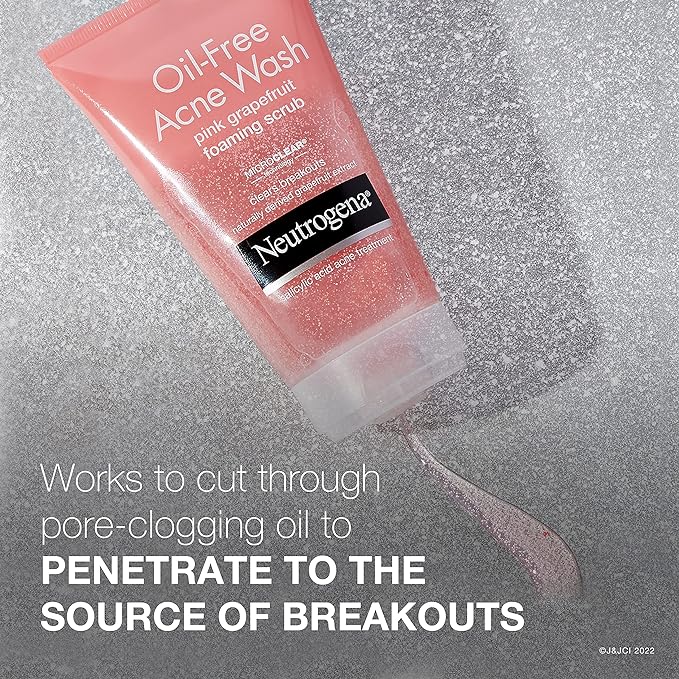 - Pack with three tubes of 6.7-fluid ounces each of Neutrogena Oil-Free Acne Wash Pink Grapefruit Foaming Face Scrub, with 2% salicylic acid acne medication to help treat breakouts while gently exfoliating your skin