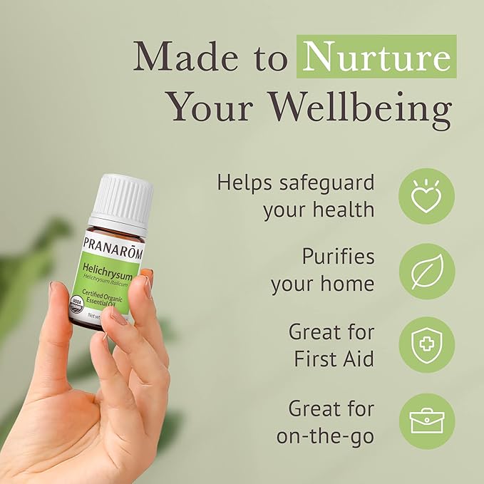 Pranarom USDA Certified Organic Helichrysum Essential Oil (2ml), 100% Pure Natural Therapeutic Grade for Skincare, Lotions, Aromatherapy, Diffusion, and Wellness