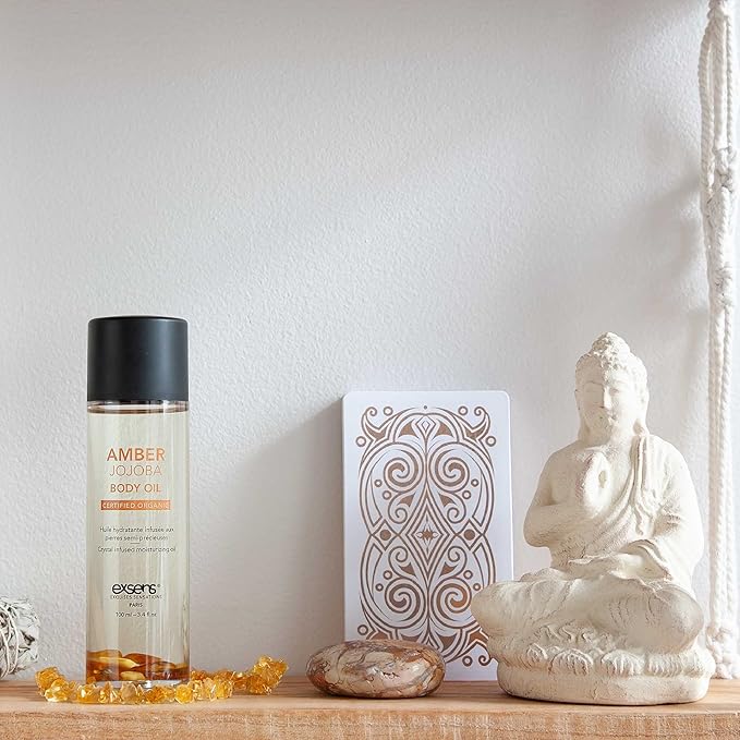 EXSENS Amber Jojoba Crystal Infused Moisturizing Body Oil, Great for Skin& Hair, Certified Organic, Vegan, Paraben Free, Non GMO, Natural Fragrance, 100 ml - 3.8 fl.oz