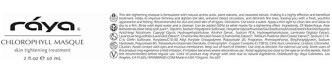 Raya Chlorophyll Masque (607) | Tightening Facial Treatment Mask for All Skin | Reduces Fine Lines and Wrinkles | Skin Tightening Mask for Face Skin Care | Face Masks Skincare