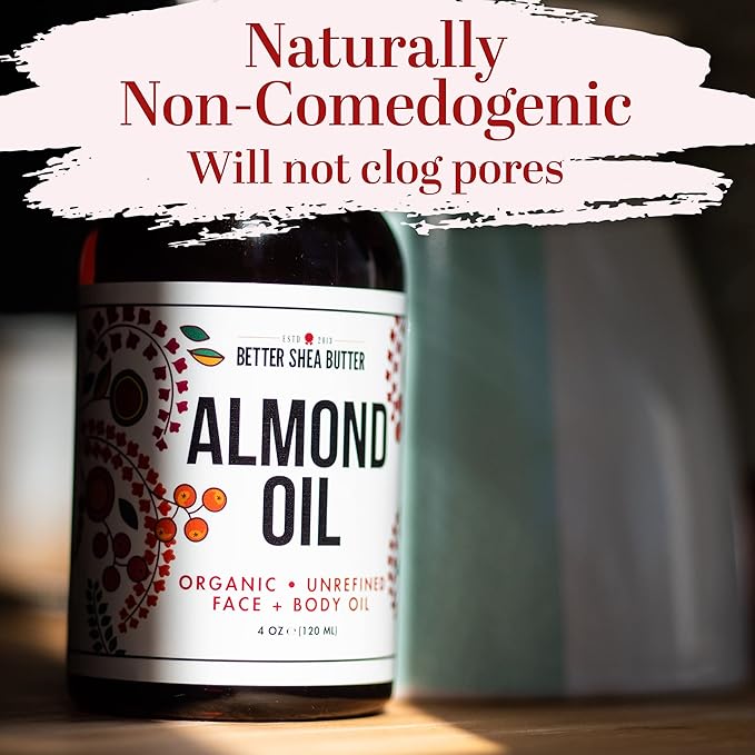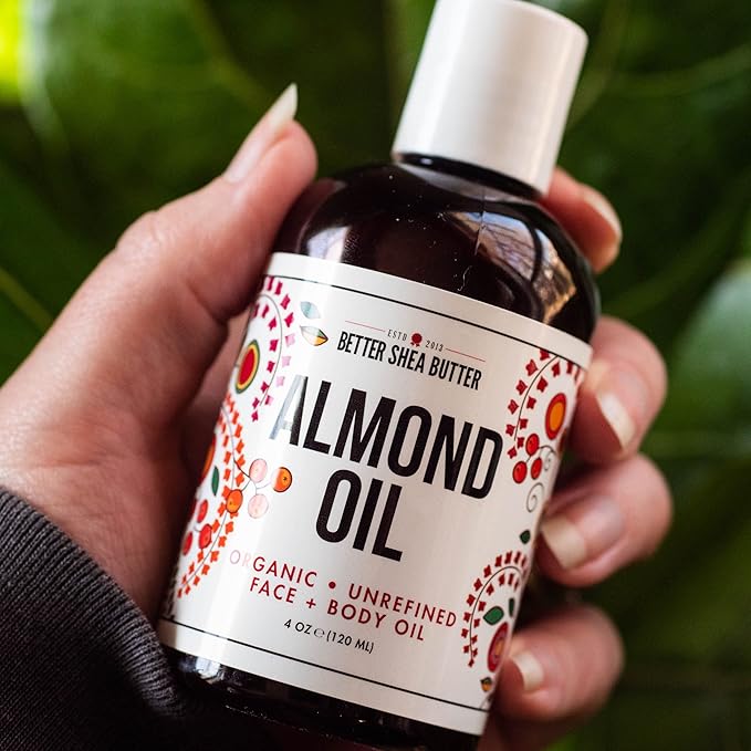 Better Shea Butter Organic Almond Oil | 100% Pure, Cold-Pressed | Natural Massage Oil for Body and Face | 4 oz