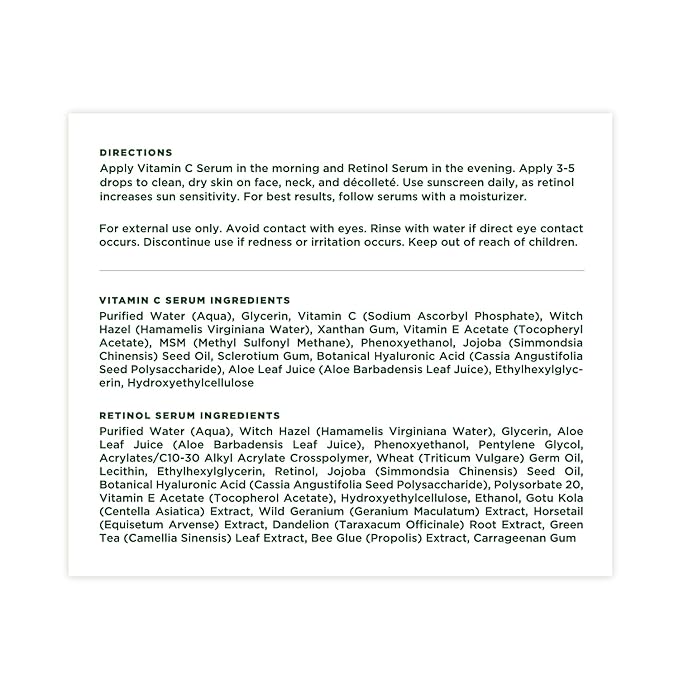 - EASY TO USE DIRECTIONS: Apply Niacinamide Serum in the morning followed by Vitamin C Serum. Apply Niacinamide Serum in the evening followed by Retinol Serum, then Hyaluronic Acid Serum. Apply 3-5 drops to clean, dry skin on face, neck, and décolleté. Use sunscreen daily, as retinol increases sun sensitivity. For best results, follow serums with a moisturizer