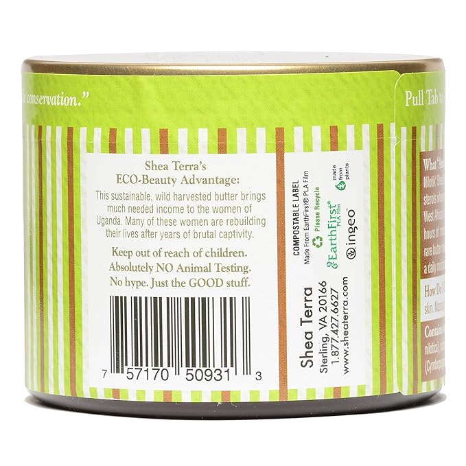 Shea Terra Organics 100% Organic Cold-Pressed Virgin Shea Butter – Coconut Lemongrass | Natural Anti-Aging Daily Skin, Nails & Hair Cream to Soften Dry Skin, Reduce Wrinkles & Stretch Marks – 6 oz