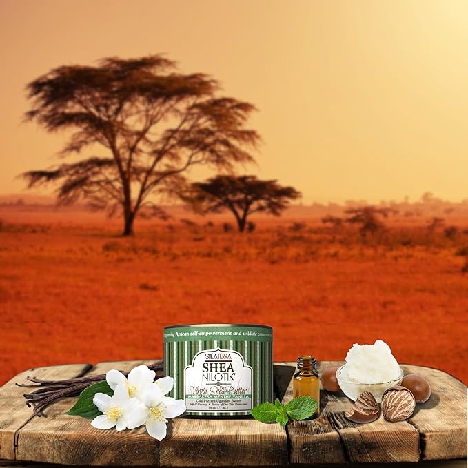 - Rare East African Shea Butter: This shea butter is creamier and softer than its West African counterpart. East African shea nuts are higher in olein & tocopherols and are exceptional for aging skin & after-sun care.