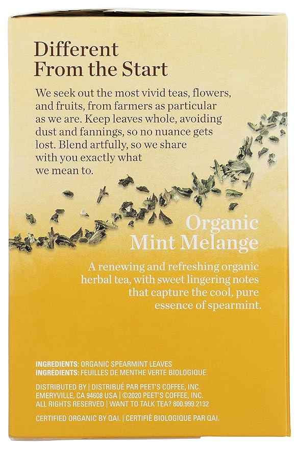 - BALANCED AND FULL: Organic Mint Melange has a balanced and fuller body with a touch of a tang, while delivering the classic aroma of fresh mint.