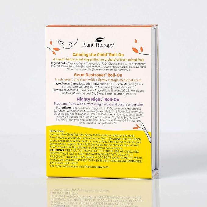 • KIDSAFE BLENDS: In our KidSafe Essentials Roll-On Set, your kids can experience the soothing and therapeutic properties of Calming the Child, Germ Destroyer, and Nighty Night. With this set, you’ll have plenty to choose from to help during times of restlessness or seasonal threats.