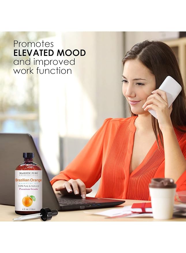 MAJESTIC PURE Brazilian Orange Essential Oil | 100% Pure and Natural | Premium Grade Essential Oils for Hair Care, Home Diffusers, Skin, Aromatherapy, Massage and Humidifiers | 4 Fl Oz