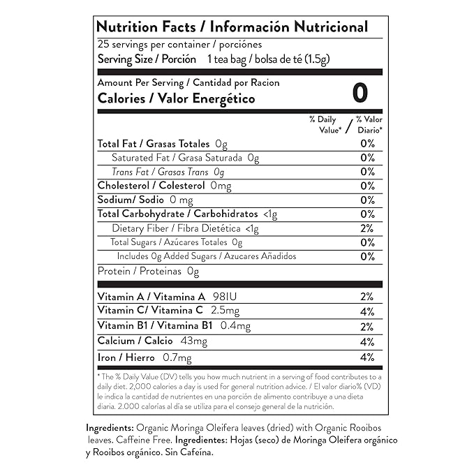 Miracle Tree - Organic Moringa Superfood Tea, 25 Individually Sealed Tea Bags, Rooibos (Keto, Detox, Energy & Immunity Booster, Vegan, Gluten-Free, Organic, Non-GMO, Caffeine-Free)