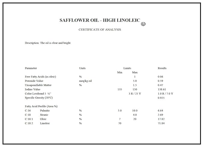 - ๐ถ NON-COMEDOGENIC: Although noncomedogenic safflower oil can be used for different skin types it works especially well for those with oily acne prone skin. It has a comedogenic rating of zero to help prevent break outs from clogged pores. With a high Linoleic acid content it helps to keep the sebum, the skin's natural oil, levels balanced. Safflower oil act as a lubricant that prevents water from leaving the skin, thereby locking in the moisture for healthy, glowing skin.