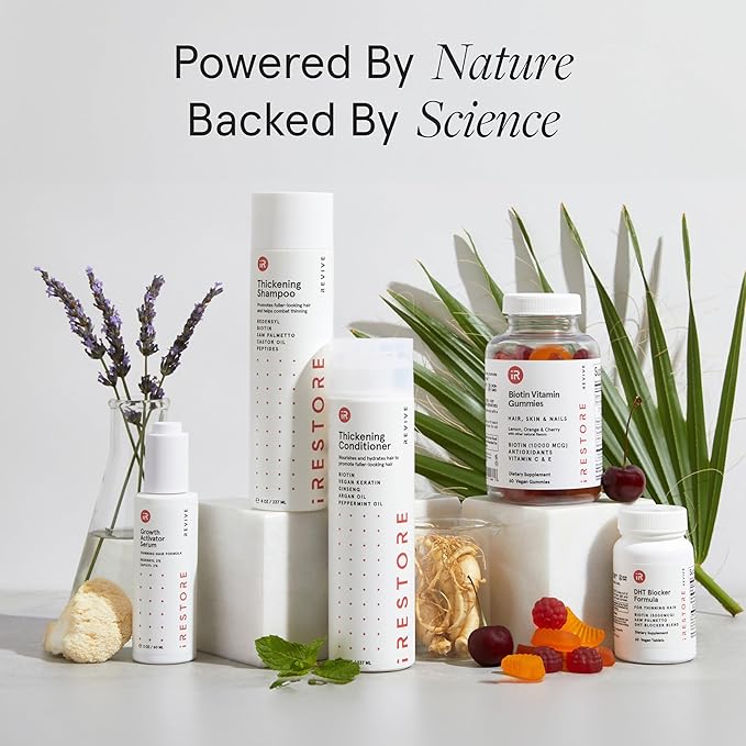 - An All-In-One Solution: iRestore hair, skin, and nail gummy vitamins promote hair health, density, thickness, fullness, and nourish the skin. Our biotin gummies are packed with antioxidants and are a delicious way to combat thinning hair, balding, receding hairline, breakage, hair loss, acne, premature wrinkles, and brittle nails.