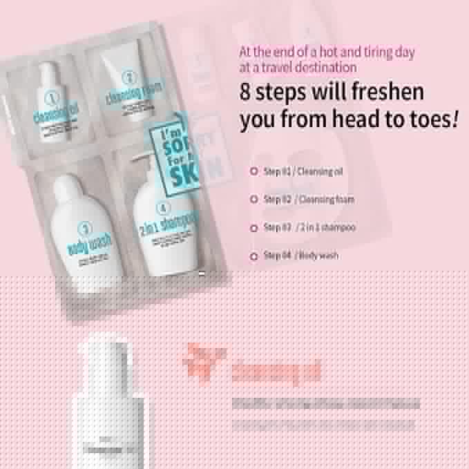 I'M SORRY FOR MY SKIN 8-Step Skincare Travel Essentials Kit, Korean Skin Care Set All in 1, Face Wash, Body Cleansing, Face Moisturizer, Girls Trip and Gift for Women, 8 Products in One (3 set)