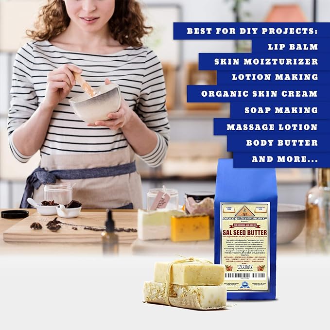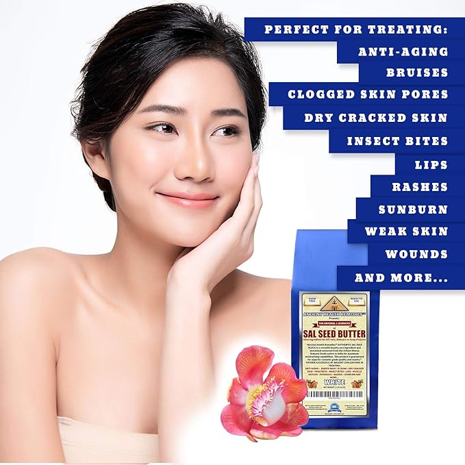 - *BUYING AN ANCIENT HEALTH REMEDIES AUTHENTIC SAL SEED (SHOREA ROBUSTA) BUTTER 1 LB BLOCK is a healthy and affordable alternative to raw Body Butters used in treating Acne, Anti Aging, Dry, Itchy Skin, Chapped Lips, Frostbite, Psoriasis, Rashes, Stretch Marks, Sunburn and more. FREE 8 X 8 QUALITY 2 ML ZIP LOCK STORAGE BAG INCLUDED WITH EACH PURCHASE.