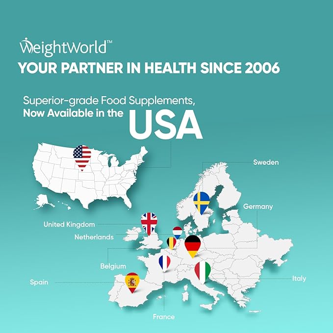 - WEIGHTWORLD - YOUR PARTNER IN HEALTH SINCE 2006 - Begin your wellness journey with the leading healthcare brand, now available in the USA! With over a decade of experience, we have earned the loyalty of millions of customers worldwide, including in the UK, Germany, Spain, Italy, France, and beyond. We are proud to introduce our superior-grade food supplements to you and your family. Join our growing community of happy customers and start experiencing the health benefits!
