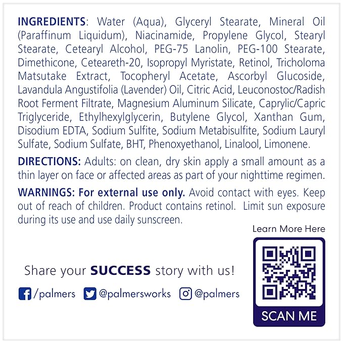 Palmer's Skin Success Anti-Dark Spot Nighttime Fade Cream with Retinol & Niacinamide, Dark Spot Corrector for Face, Night Moisturizer Helps Reduce Dark Spots, Fine Lines & Wrinkles, 2.7 Ounce