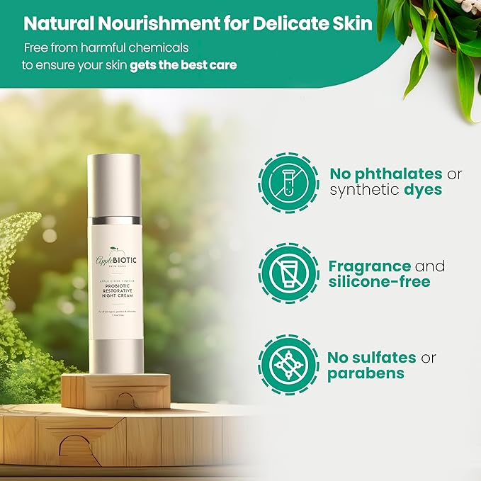 Apple Cider Vinegar Restorative Night Cream - Overnight Firming, Smoothing Cream with African Green Coffee, Green Tea, Chamomile & Probiotic Extracts for Dry, Oily, Sensitive Skin, Men & Women