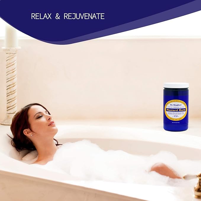 Dr. Singha's Mustard Bath Salts - 28 oz Herbal Bath Soak with Essential Oils for a Relaxing and Rejuvenating Experience - Made in USA