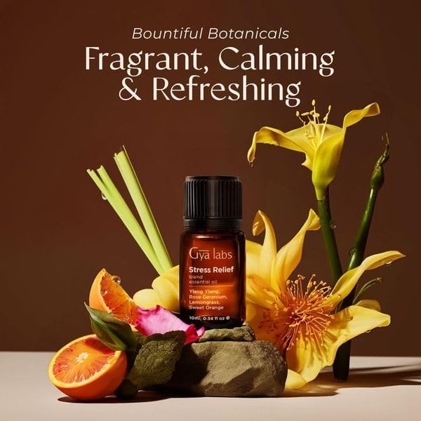 - A trusted name in aromatherapy oils. Gya Labs' Stress Relief Essential Oil Blend is made from the finest ylang ylang flowers from Madagascar, rose flowers from South Africa, orange rinds from Brazil & lemongrass from Thailand.