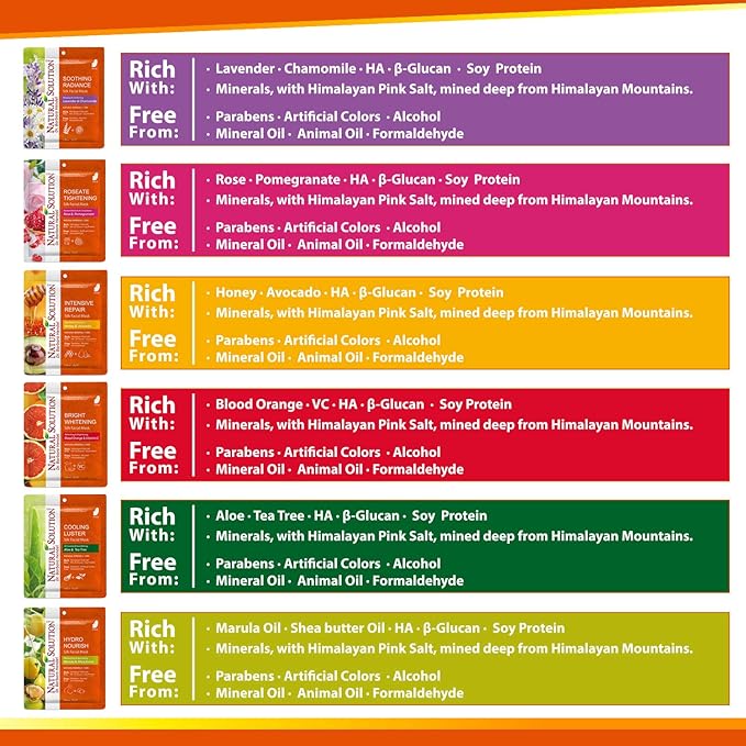 - Silk Facial Masks Clear Away Fatigue and Tension, Bringing You Hydrated Shiny Skin. Each Mask Contains Rich Extracts That Repair, Nourish, Hydrate and Have Anti-Aging Properties.