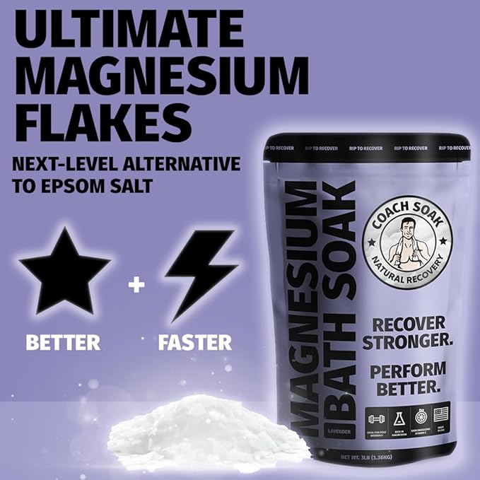 Coach Soak Recovery Bath Soak - Faster Absorption Than Epsom Salt for Pain - Rejuvenating Magnesium Flakes with 21 Minerals, Essential Oils & Bath Salts, 3lbs (Calming Lavender)