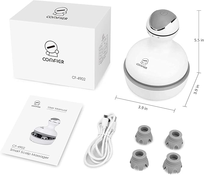 - Deep Scalp Massage :COMFIER head massager scalp has four massage heads with 28 individual nodes each which rotates both in clockwise and anti-clockwise direction giving you a soothing massage, hair deep Clean and relief stress & pain.