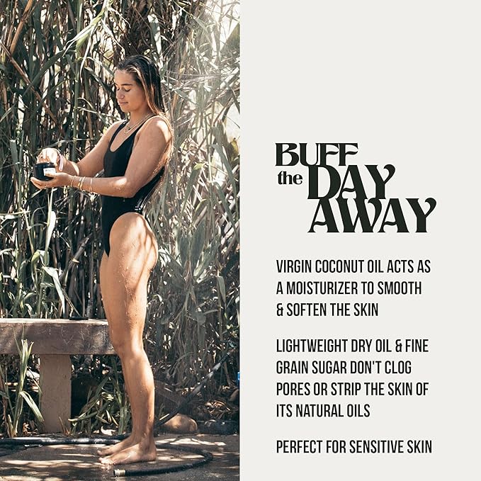 - Coconut Oil Scrub. Buff the day away with an exfoliating body scrub that smooths and softens your skin. The lightweight dry oil and fine grain sugar won’t clog your pores or strip skin of natural oils.