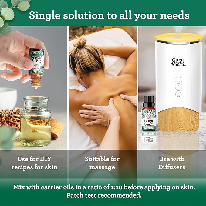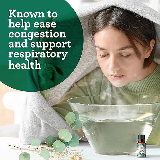 GuruNanda Eucalyptus Essential Oil (2x0.5 Fl Oz) - 100% Pure & Undiluted Aromatherapy Oil for Diffusers - Helps with Congestion for Easier Breathing