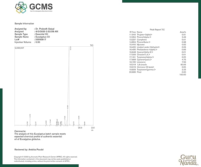 - GuruNanda's Eucalyptus Essential Oil is 100% pure & natural. Sourced directly from the farms of China, it is packaged in the USA and boasts an enchanting aroma with no added artificial fragrances.