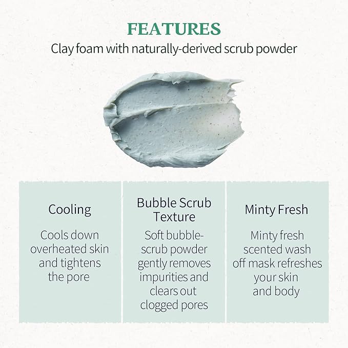 SKINFOOD Mask Pear Mint 120g - Facial Pore Cleanser, Soothing & Hydrating Body Skin - Pore & Sebum Clearing, Cooling Bubbles Scrub Wash Off Face Masks w/Rice Powder - Shower-Proof Texture (4.23 oz)