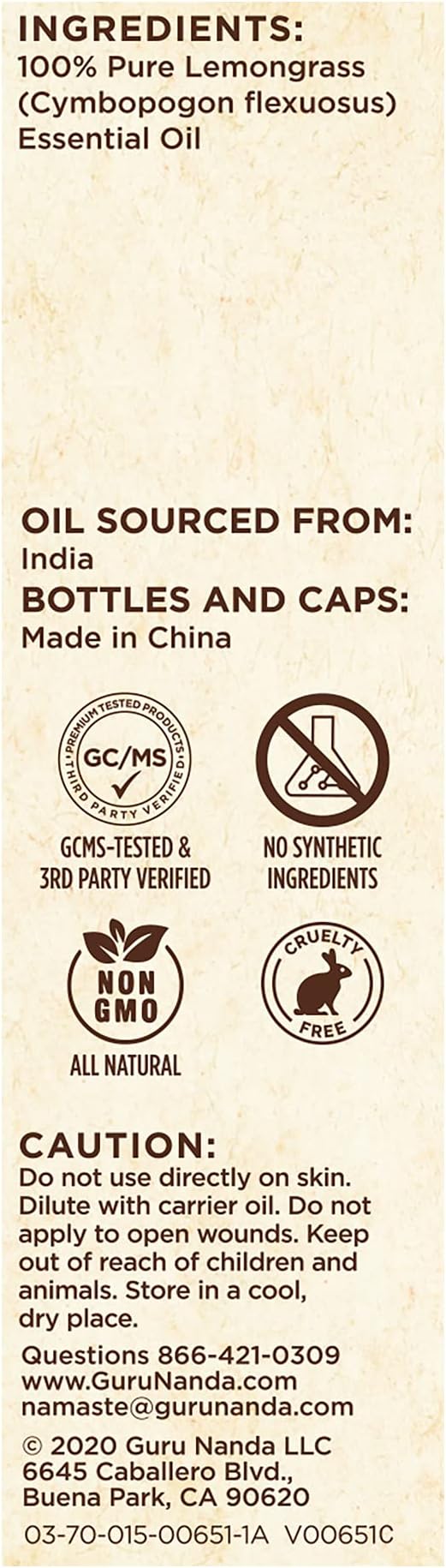 - PERFECT FOR AROMATHERAPY: Renew, revive, and revitalize with Lemongrass Essential Oil from GuruNanda. The stimulating, energizing, and cleansing essential oil with a citrusy, earthy aroma is perfect for aromatherapy.
