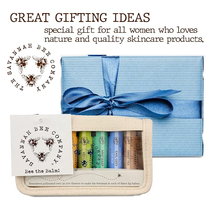 - LIP BALM VARIETY PACK - These 7-pack lip balm sets contain tupelo honey, mint julep, earl grey, wild blackberry, sweet tea, key lime, and organic peach flavored lip balms for every day use.
