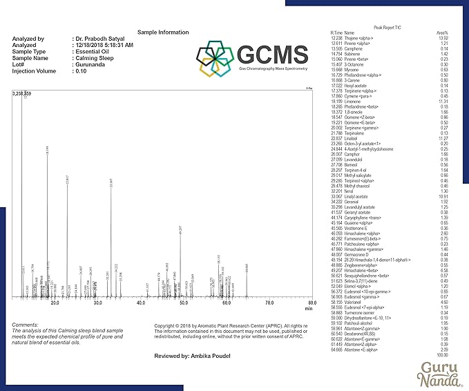 - GuruNanda's Calming Sleep oil is a 100% pure blend of Lavender, Lemongrass, Wintergreen, Cedarwood, Frankincense, Orange, Amyris, and Patchouli, sourced directly from farms and packaged in the USA.