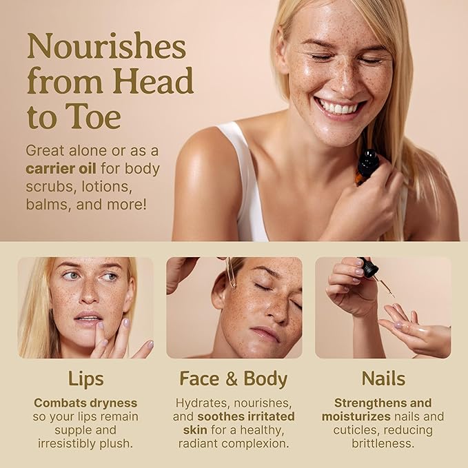 - ✔️ [Radiant Harmony]: Let your face shine with this oil, a blend of Vitamin E richness, bringing harmony and glow to your complexion.