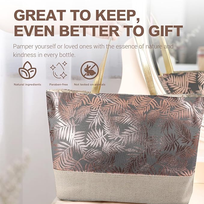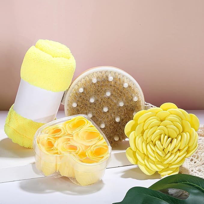 - π Come with essential oil, bubble bath, shower gel, hand cream, body lotion, body butter, bath bombs, bath salt, shampoo bar, pouf sponge, shower cap, bath brush and handmade tote bag.