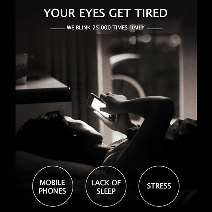 - Your eyes get tired. We blink 25k times daily. Mobile phones. Lack of sleep. Stress.