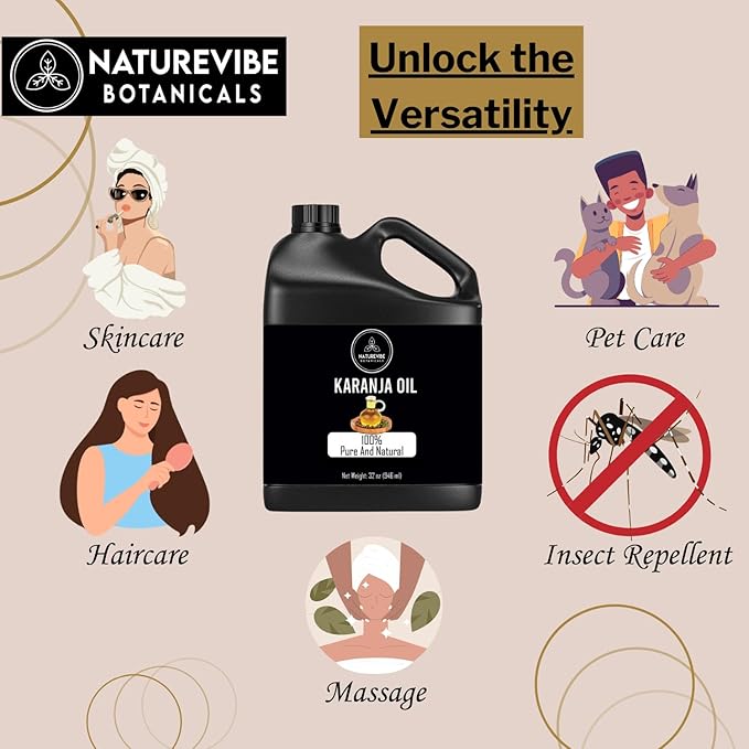 - ✅Naturevibe Botanicals Karanja Oil (32oz) | 100% Pure & Natural Cold Pressed Body Oil | Hair Care | Pongamia pinnata (946 ml)