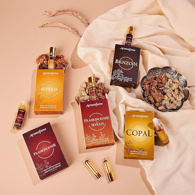 Spiritual Awareness Pure Resin Essential Oil Roll-On Blend Gift Set by Aromafume | 6 x 6ml | Frankincense, Copal, Benzoin, Frankincense&Myrrha | for Meditation, Spiritual Awakening & Prayer