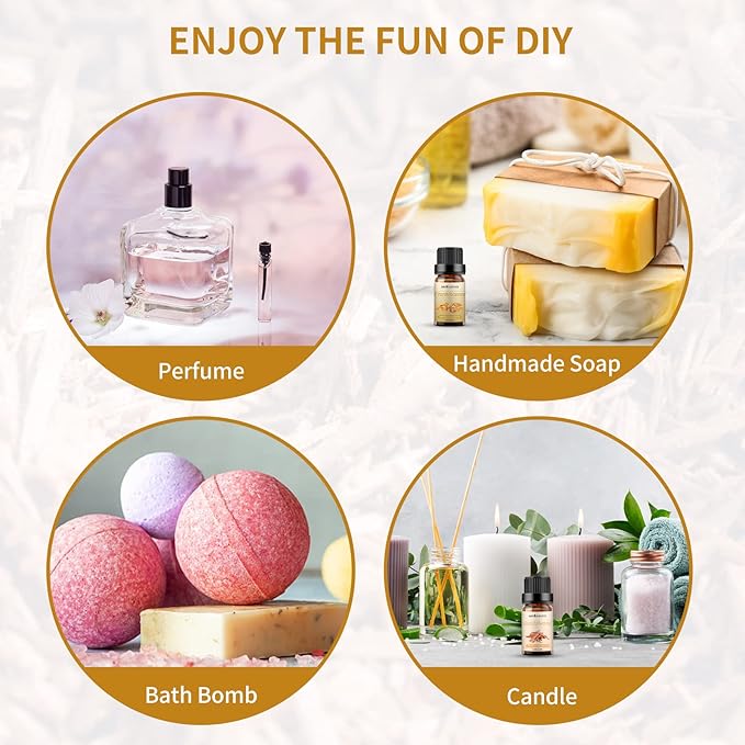 - Multiple Uses: Our Essential oil can be used a diffuser, also to make perfume, scented candles, cleaning products, hair care, slime making, bath bombs, soaps or for bath, massage and home care.