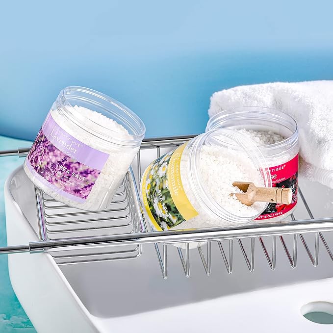 - Bath Salts Gift Set: The luxurious bath gift set includes 3x sea salts with lavender, rose and chamomile scent and 3x bath bombs, morocco argan oil and wooden scoop. This spa gift for women with three different scents