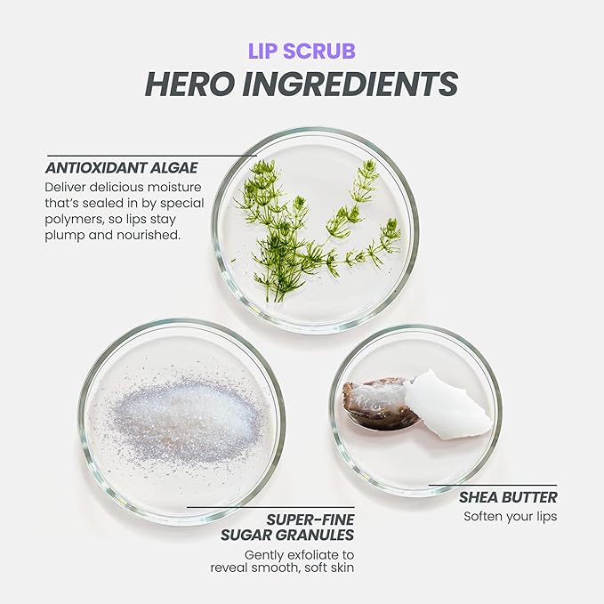 - š š¢šš¦š§šØš„šššš¦ šššš š šš„ššš - The lip scrub's nourishing formula includes Shea Butter and algae, which provide excellent moisturizing properties, making it an excellent lip scrub for dry cracked lips. This lip scrubs exfoliator & moisturizer is designed to provide your lips with the right balance of nutrients, ensuring that your lips are always soft and hydrated.