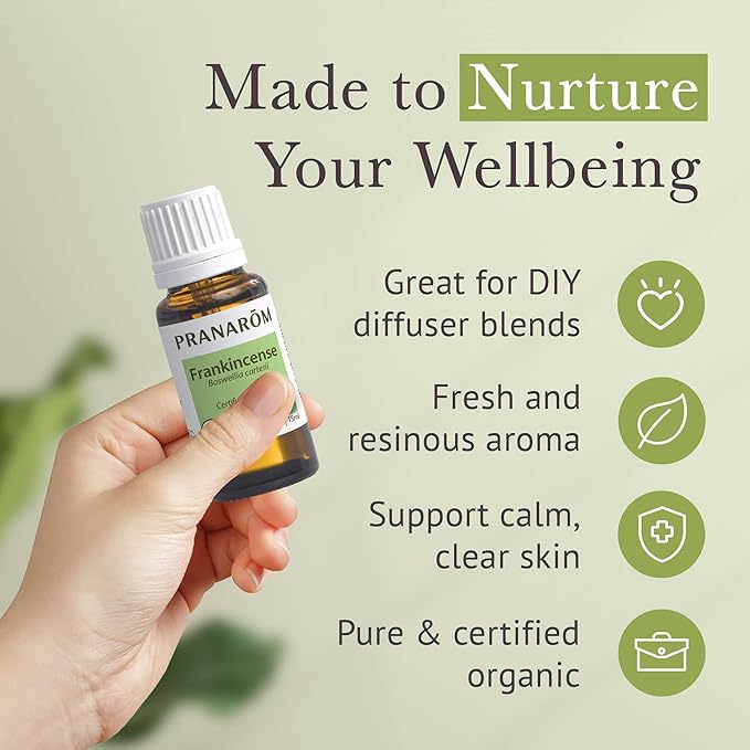 - 100% PURE ESSENTIAL OIL - This frankincense essential oil is distilled and pressed from solely sustainably harvested organic plants. All of Pranarom's products are sourced from organic farms from across the globe to provide only the finest, organic ingredients.