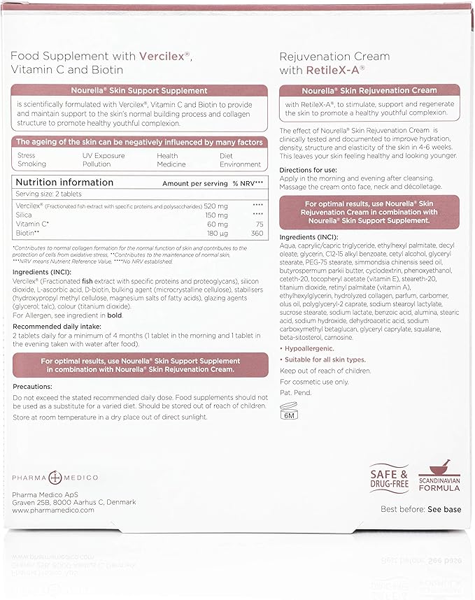 - 1 month supply (50ml rejuvenation cream + 60 food supplement tablets)
