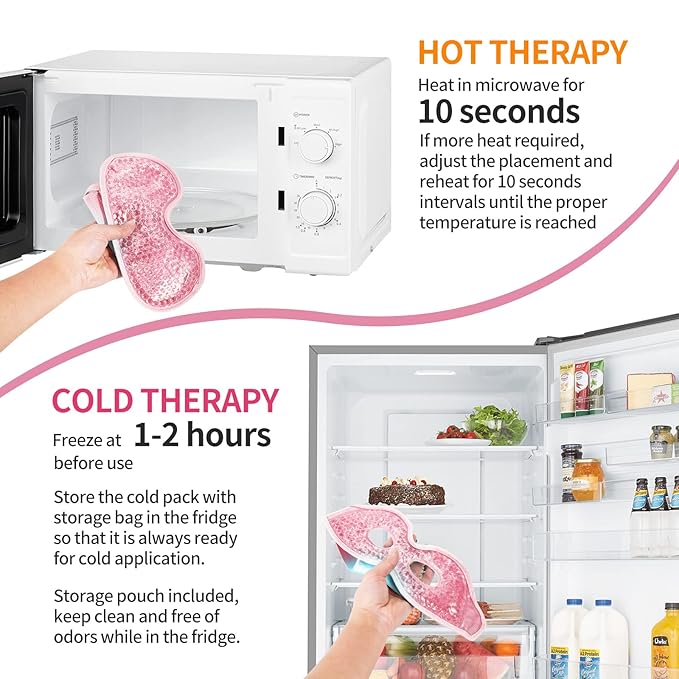 2PCS Reusable Hot Cold Therapy Gel Eye Mask for Puffiness, Dark Circles, Eye Bags, Dry Eyes, Headaches, Migraines, Stress Relief - Cooling Gel Bead Compress (Pink)