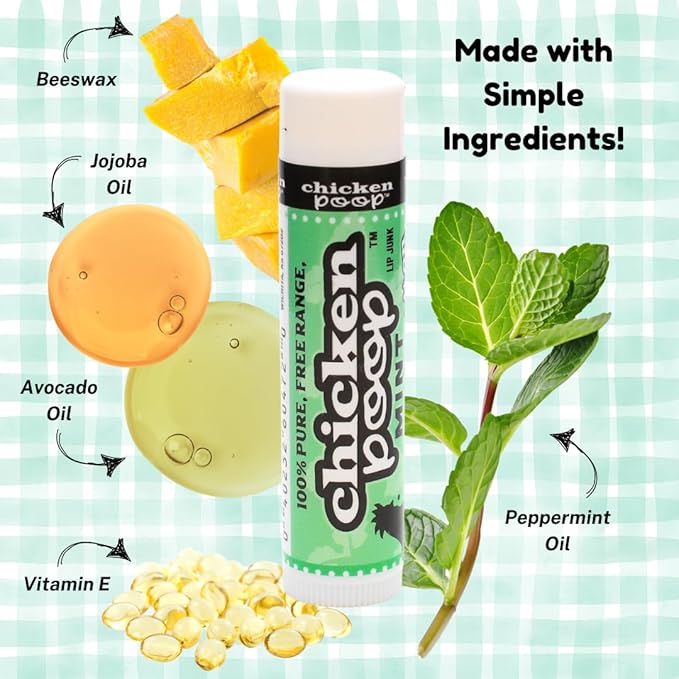 Chicken Poop Lip Balm Simone Chickenbone Mint Duo Moisturizer for Dry Chapped Lips, 0.15 oz, Pack of 2