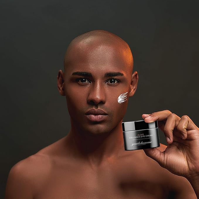 - EYE CREAM FOR MEN WITH COLLAGEN - Gentlehomme Alive Eye Cream for men is infused with collagen to add hydration, smoothness and brightness to your under eye area. Collagen may help restore skin cells for healthy aging. Collagen is the most abundant protein the body and is known to help regenerate, reduce redness, swelling and revive tired skin.
