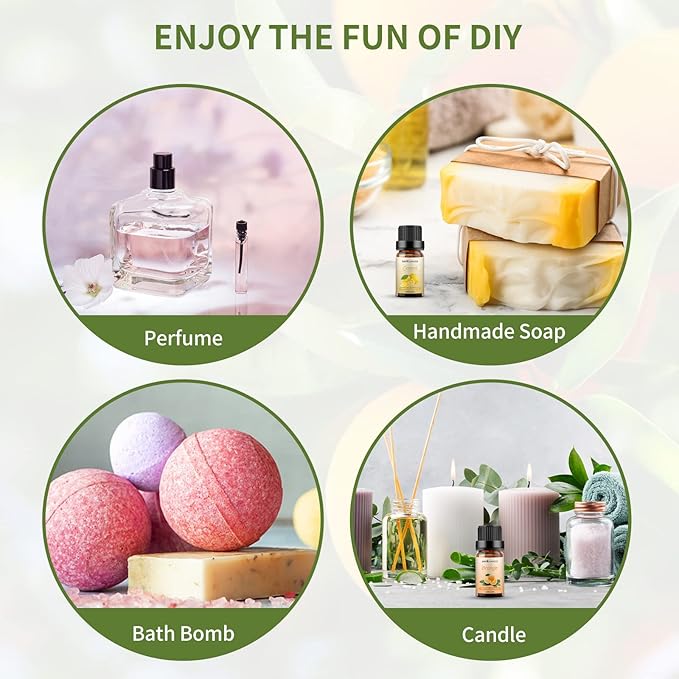 - Variety Uses & Applications: Suitable for diffuser, clean, spa massage, perfume, home, bedroom, living room, bathroom,office, aromatherapy, outdoors, soap or candle making, yoga room, and car,etc.