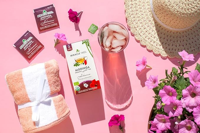 Miracle Tree - 3 Count of Organic Moringa Superfood Tea, 25 Individually Sealed Tea Bags, Hibiscus (Keto, Detox, Energy/Immunity Booster, Vegan, Gluten-Free, Organic, Non-GMO, Caffeine-Free)