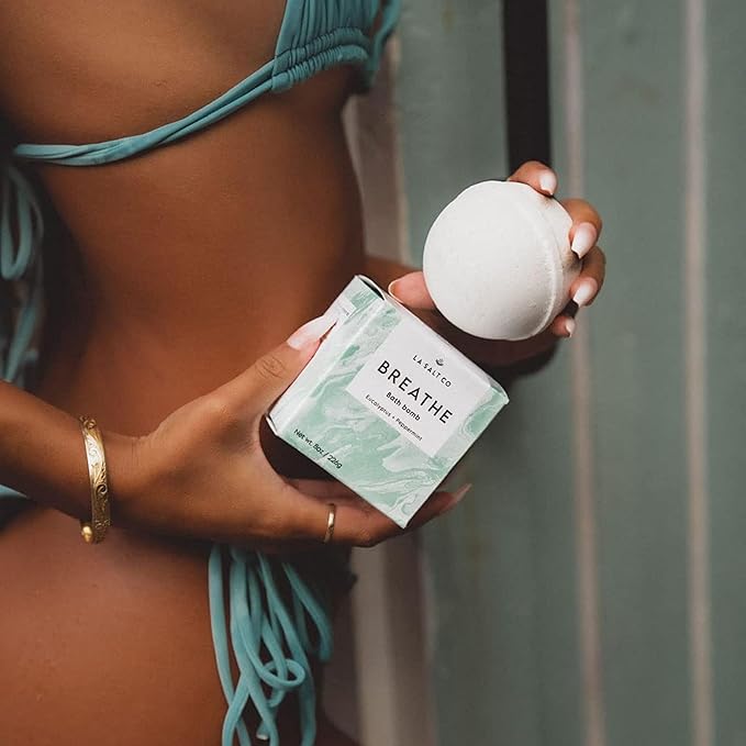 Breathe Bath Bomb, 8 OZ - Large, Handmade with Natural Ingredients, Mineral-Rich Himalayan Salt, Cruelty-Free, Made with Pure Therapeutic Grade Essential Oils